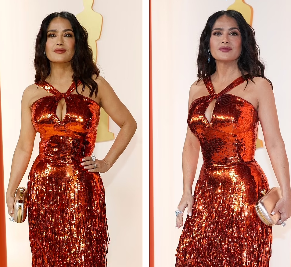 Мексиканская актриса Сальма Хайек, как обычно пришла на светское мероприятие в обтягивающем вечернем наряде, подчеркнув пикантную зону декольте смелым вырезом.