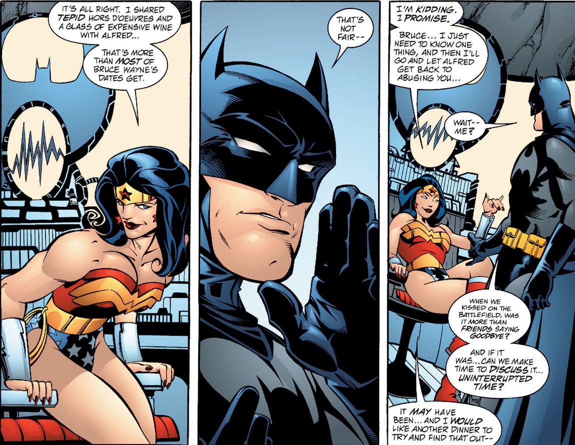 Despite the end of their romantic relationship, they remained caring friends, and Wonder Woman still had feelings of love for Batman, as depicted in a vision where she kissed him, breaking free from the influence of the Black Lantern Ring. Their flirtation continued even after their official relationship ended.