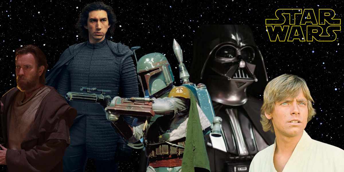 (L-R): Obi-Wan Kenobi, Kylo Ren, Boba Fett, Darth Vader, and Luke Skywalker from ‘Star Wars’ / Credit: Lucasfilm