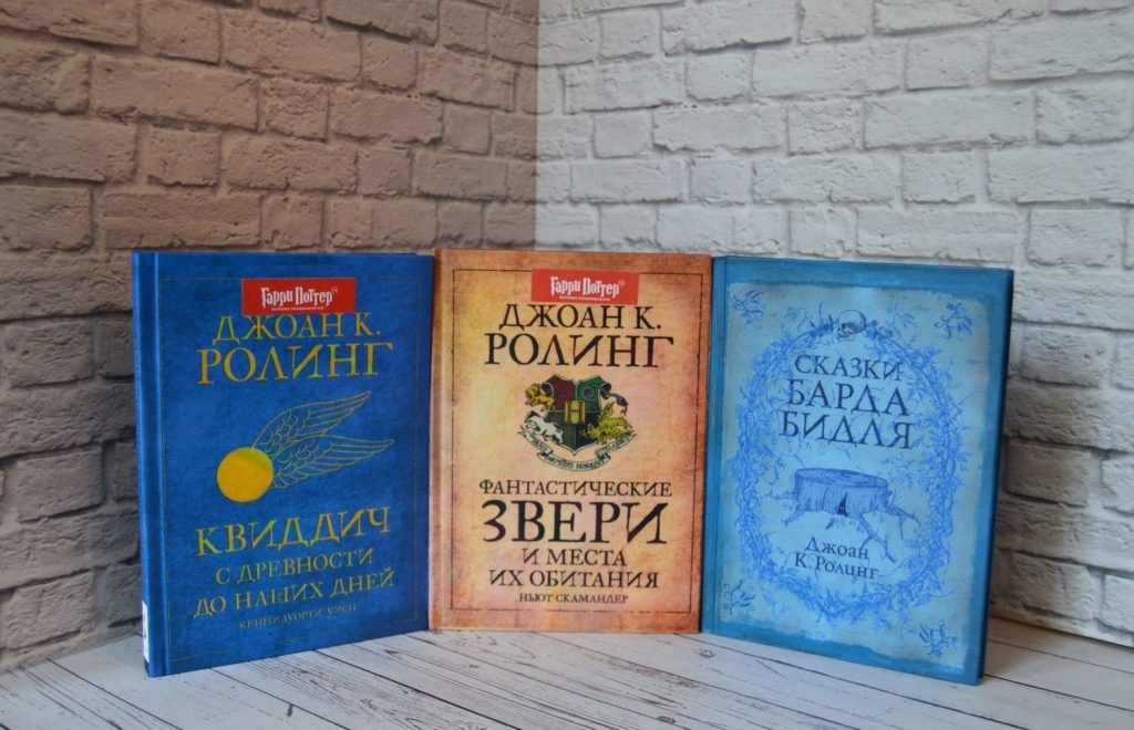 Первая от лица эксперта по волшебному спорту Кеннилуорти Уимса под названием «Квиддич: с древности до наших дней». Вторая, написанная Ньютом Скамандером (Саламандером в русском дубляже), является учебником по дисциплине «Уход за магическими существами». Обязательный в Хогвартсе учебник называется «Фантастические звери и места их обитания». Третья книга является сборником сказок Барда Бидля, включившим в себя пять историй, в том числе и ту самую сказку о трёх братьях, получивших Дары Смерти.