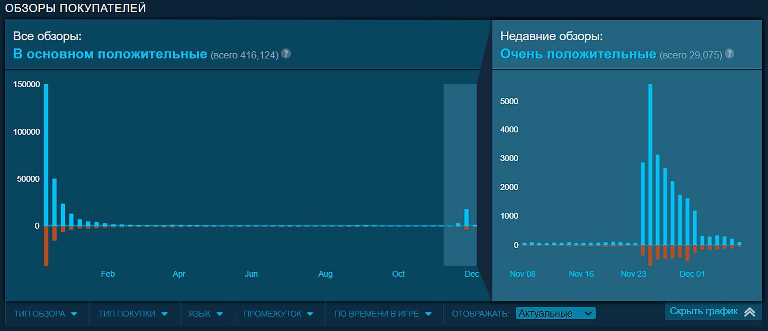График оценок игры в Steam на 7 декабря 2021 года. Скриншот: Skillbox Media