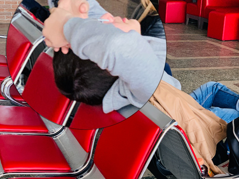 Я пришёл в 9:30, этот парень уже ждал в такой позе. В разговоре с подругой: «Вот и все…»