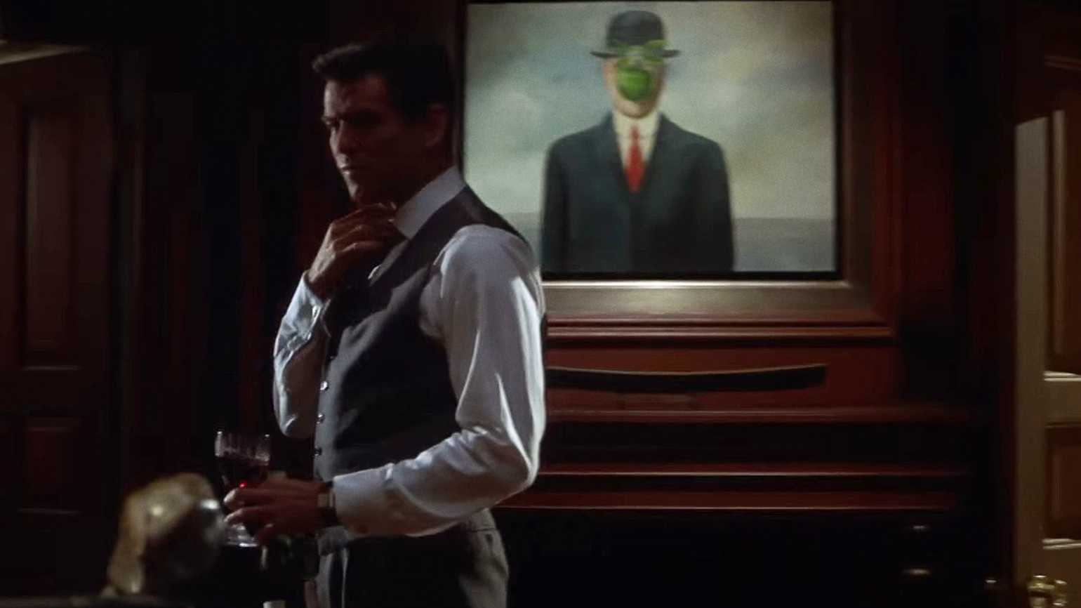 Картина «Сын человеческий» появляется в фильме несколько раз, в первый — дома у главного героя, когда он будет возвращаться после блестяще провёрнутого похищения шедевра Моне. А затем Краун уже сам примерит образ мужчины с полотна — на повторную аферу в Метрополитен-музее он наденет котелок и чёрное пальто. Благодаря этому облику Краун провернёт очередной трюк — нанятые им подставные лица будут одеты в точности как он, что позволит герою с лёгкостью скрыться с места преступления.