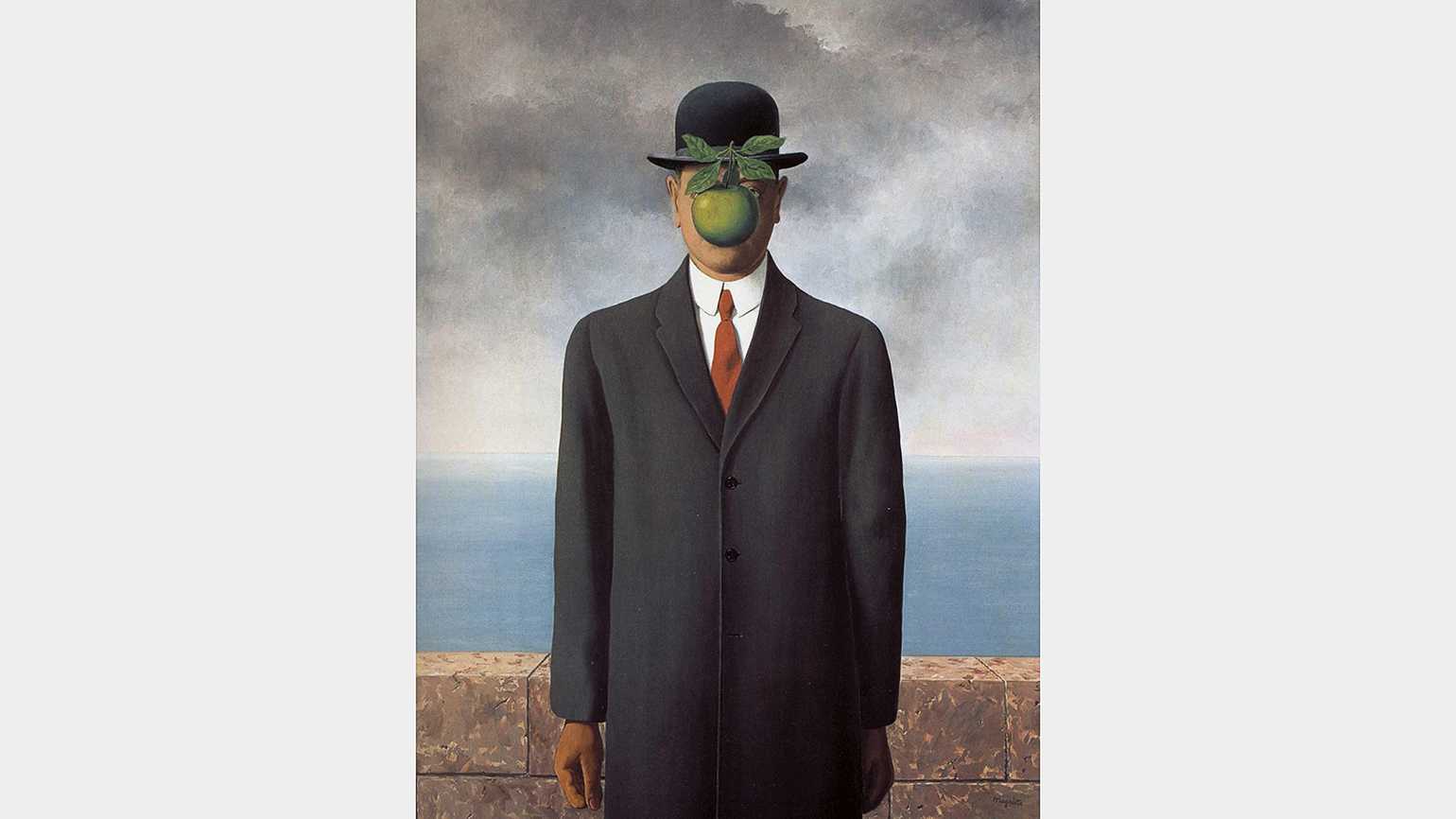 «Сын человеческий» считается знаковой работой сюрреалиста Рене Магритта. На полотне изображён загадочный мужчина в чёрном пальто и котелке, его лицо скрыто яблоком. Яблоко — символ греха. Но означает ли это, что у мужчины на уме греховные помыслы? Или, может, он занят повседневными мыслями, вместо того, чтобы развернуться и смотреть на водную гладь за его спиной?