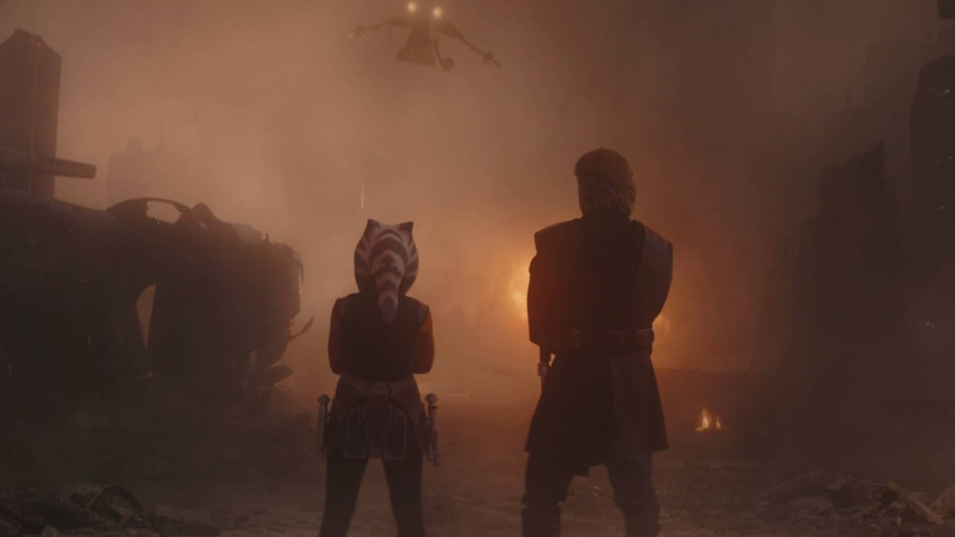 Затем — безупречная хореография световых мечей. Поединки Энакина и Асоки наполнены множеством приемов — например, печально известное вращение Энакина одной рукой — и столкновение клинков выглядит просто невероятно, с яркими цветами и обжигающими искрами энергии. Это самые лучшие бои на световых мечах, которые когда-либо были показаны в шоу Disney Plus, что подтверждает стремление Филони создавать первоклассные «Звездные войны».