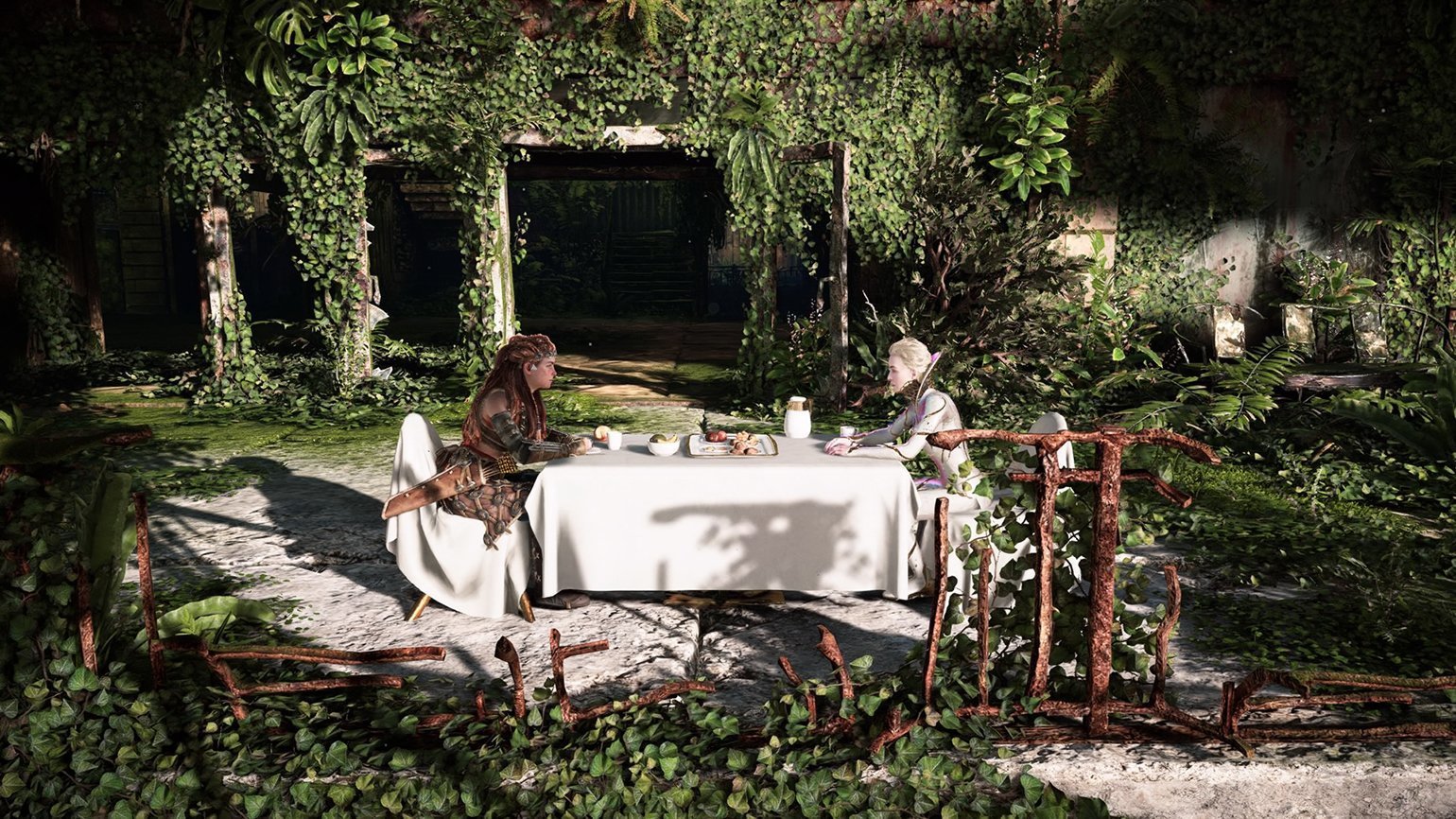 На PS5 Horizon Forbidden West, созданная в первую очередь для PS4, удивляет даже технически: в кат-сценах обычные модели персонажей бесшовно заменяют на гораздо более сложные, кинематографического уровня. Поэтому любой диалог похож на дорогой CGI-ролик, где можно разглядеть даже ворсинки и поры на лицах персонажей. Выглядит абсолютно безумно: Guerrilla Games флексит уровнем картинки, до которого далеко даже The Last of Us: Part II. И это в игре с открытым миром.
