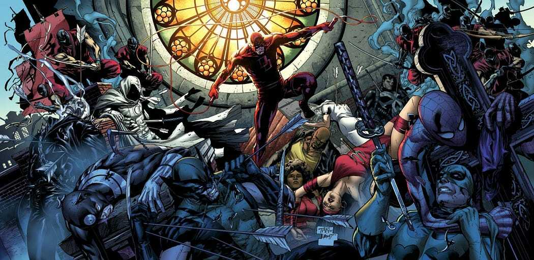 Первый персонаж, который точно стоит вашего внимания стал особенно популярен после выхода одноименного сериала (недавно как раз завершился третий сезон). Хотя и без кино адаптации Сорвиголова довольно часто мелькал в различных комиксах помимо сольников. Он постоянно пересекался с такими известными героями как: Каратель, Человек-паук, Электра, Россомаха, Люк Кейдж и другие. Цели пересказывать биографию нет, поэтому перейдем непосредственно к умениям и боевым стилям, которые использует Мэт.