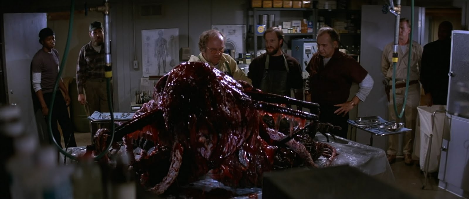 Еще одной известной сценой является спасение Норриса, когда его кладут на стол, чтобы запустить сердце дефибриллятором, однако из его груди появляются зубы, которые откусывают руки доктора, и из брюха вылезает тварь. Ее сжигают огнеметом, но в это время голова Норриса вытягивается, падает на пол, из нее вырастают паучьи лапы и она убегает. Для этой сцены были созданы три разные моделей монстров.