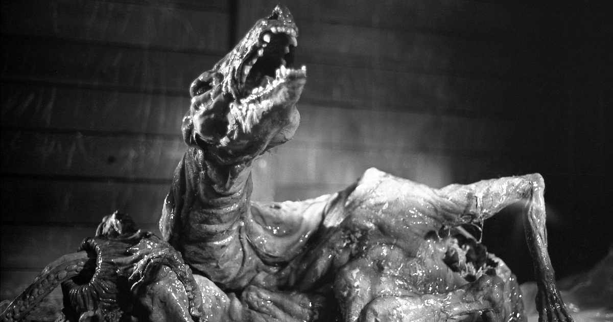 В какой-то момент Боттин был настолько ошеломлен огромным количеством эффектов, что он пригласил для помощи своего коллегу Сэма Уинстона, чтобы он создал монстра для сцены с превращением собаки, которая впервые знакомит публику с ужасом. Уинстон смог создать модель, которая, как и все остальные чудища, невероятно правдоподобно развивалась. Он управлял головой монстра при помощи сложной конструкции, а команда другими частями тела. Также применялась магия монтажа в особенности для щупалец чудовища. Так, сначала было снято, как тентакли протягивали через модель, а потом запись просто пустили задом наперед, чтобы создать ощущение, будто бы они появлялись сами. Сцена кончается тем, что Кейт Дэвид обдал монстра залпом огня из полностью работающего, настоящего огнемета.