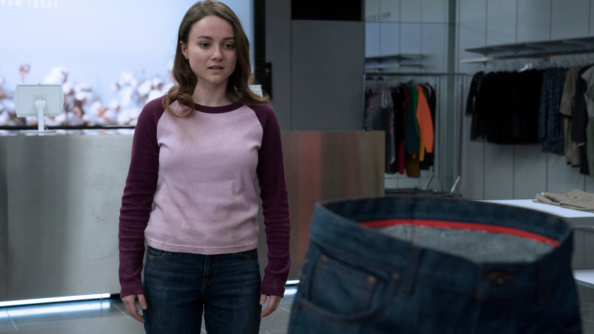 Romane Denis faces down deadly denim in «Slaxx.»