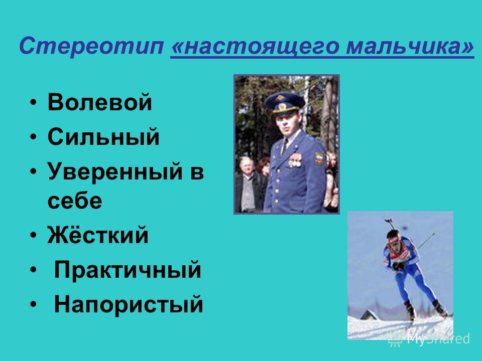 Стереотип «настоящего мальчика» Волевой Сильный Уверенный в себе Жёсткий Практичный Напористый