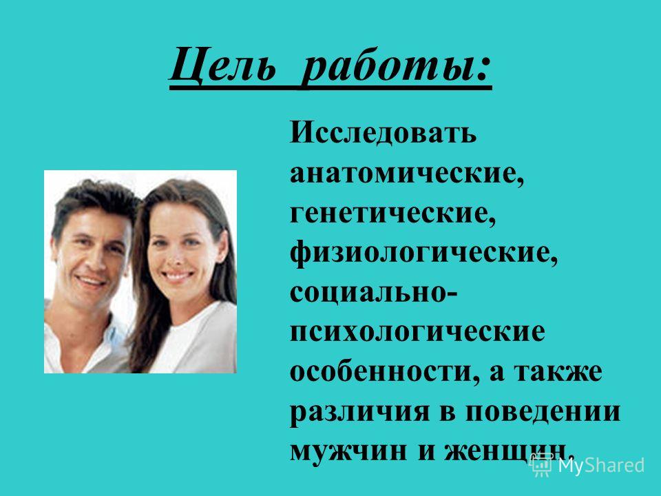 Цель работы: Исследовать анатомические, генетические, физиологические, социально- психологические особенности, а также различия в поведении мужчин и женщин.