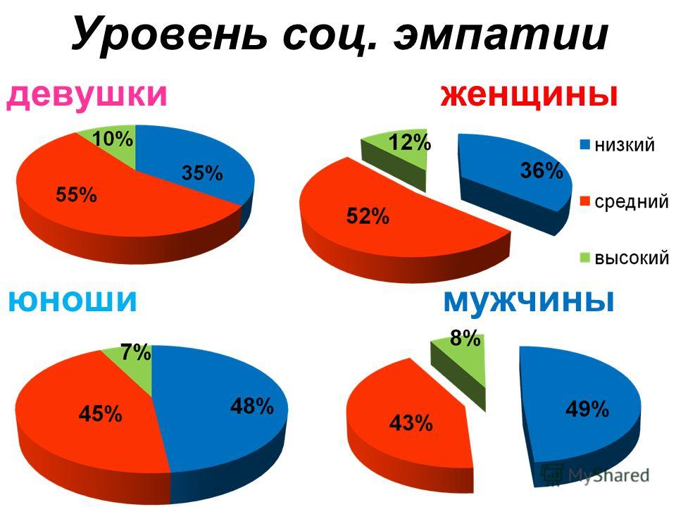 Уровень соц. эмпатии девушки женщины юноши мужчины