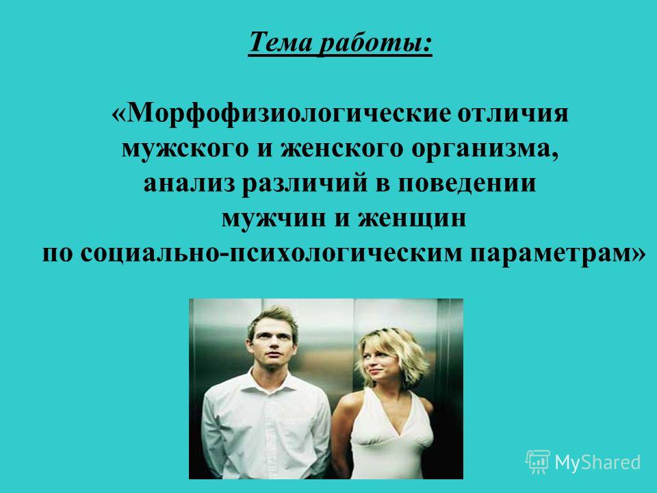 Тема работы: «Морфофизиологические отличия мужского и женского организма, анализ различий в поведении мужчин и женщин по социально-психологическим параметрам»