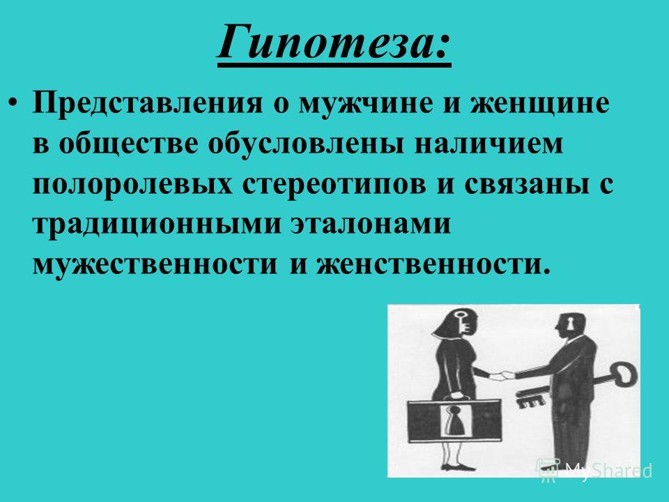 Гипотеза: Представления о мужчине и женщине в обществе обусловлены наличием полоролевых стереотипов и связаны с традиционными эталонами мужественности и женственности.