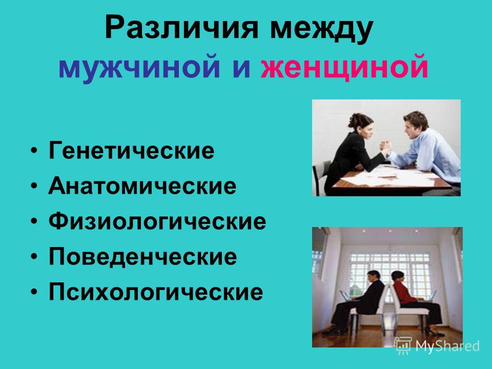 Различия между мужчиной и женщиной Генетические Анатомические Физиологические Поведенческие Психологические
