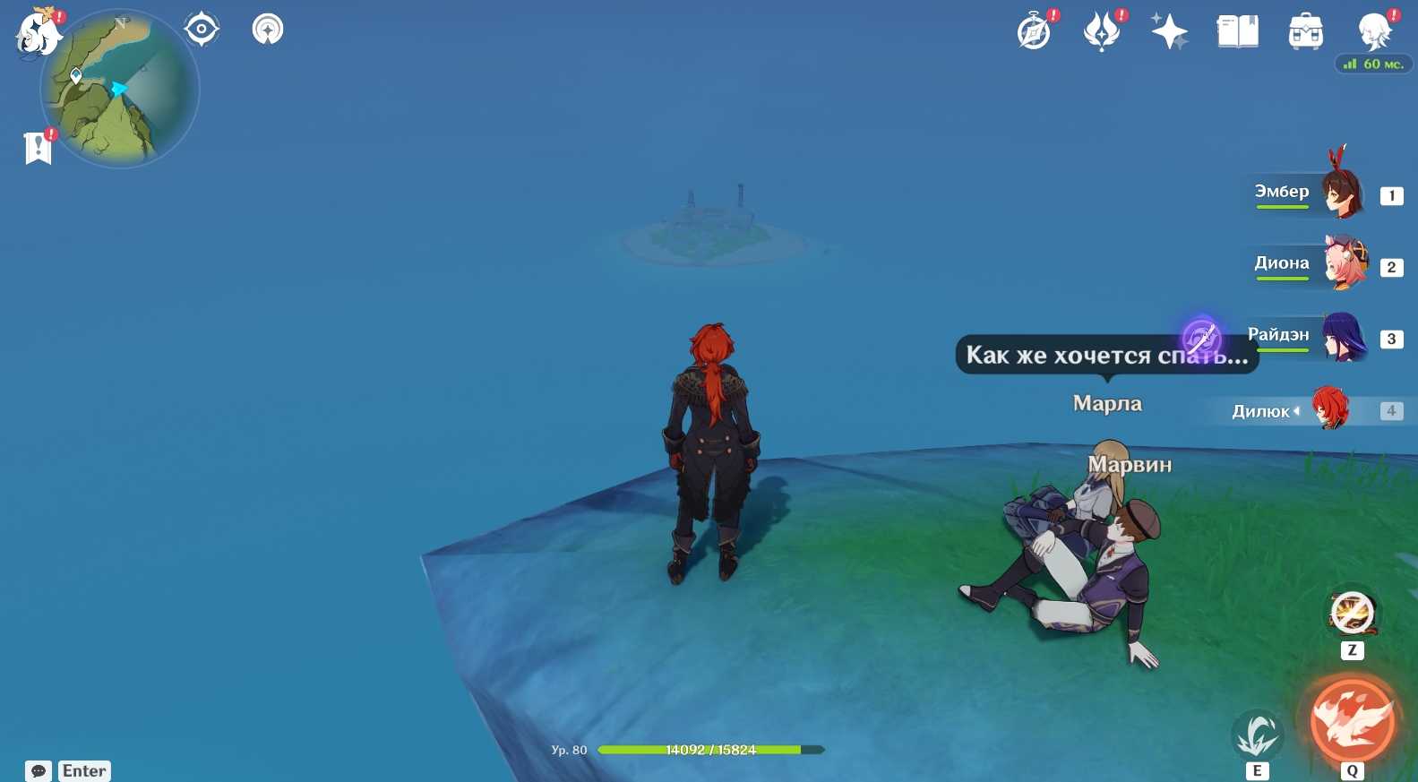 Для второго метода вам потребуется персонаж, способный замораживать поверхность. Неплохим вариантом может стать Кэйа, который выпадает практически в самом начале игры. Просто создавайте ледяную дорожку впереди себя и примерно через 10-12 минут вы доберетесь до острова. Если у вас есть несколько героев с соответствующими навыками, то вам удастся заметно ускорить свое продвижение по льду.