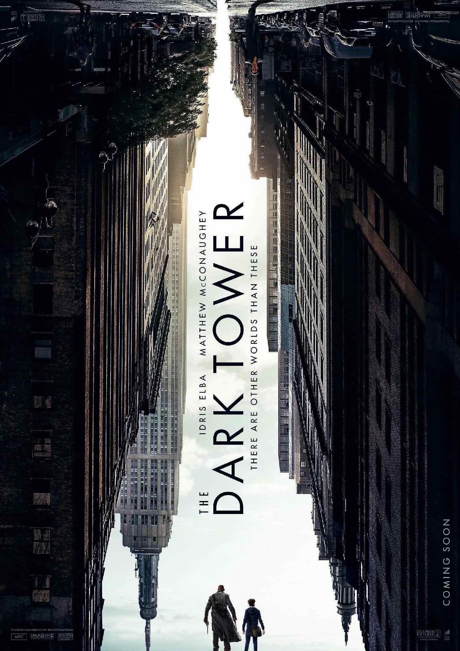 Конечно, многие заметили, что постер к «Тёмной башне» очень похож на постер к «Началу», но он таит больше загадок, на которые не сразу обращаешь внимание. Очертания башни, которые складываются из перевёрнутых небоскрёбов Нью-Йорка, вполне очевидны
