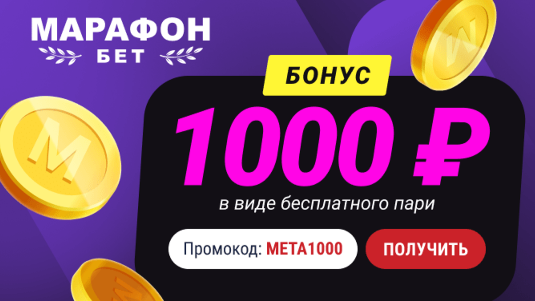 Промокод в Марафон: фрибет 1000 рублей за депозит