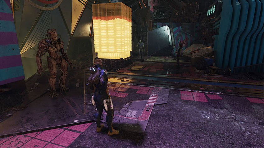 Также, по прибытии на локацию Knowhere, хорошо известную поклонникам вселенной Marvel, первым делом рекомендуем заглянуть в местный бар, после чего вы станете свидетелем необязательной, но чрезвычайно уморительной сцены. Если же вы его пропустите и активируете сюжетную катсцену, то в бар уже не сможете вернуться.