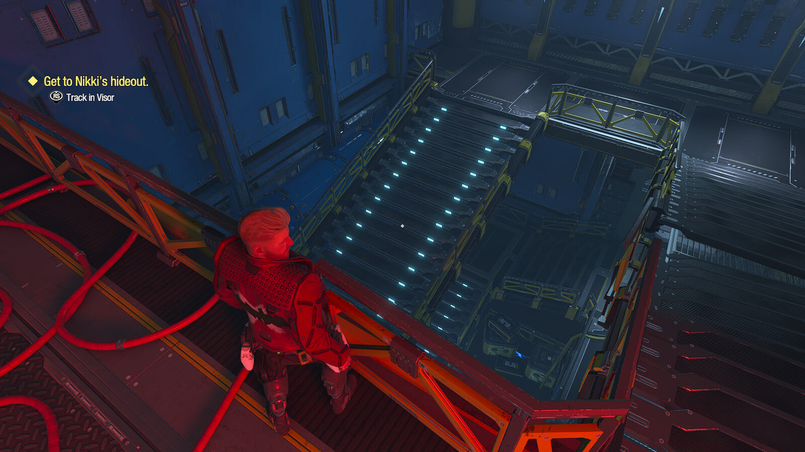 После сражения с летающими бойцами Новы, вы вернетесь к месту, где вы раньше проходили с Никки. На пути к ее убежищу вы наткнетесь на лестницу с водой под высоким напряжением. Идите к воде и воспользуйтесь бластерами, чтобы перенаправить энергию. В конце коридора будет костюм.