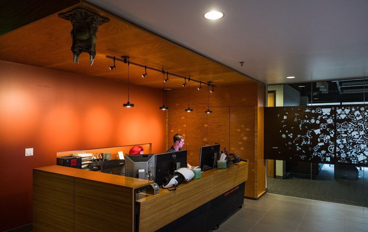 На входе в главный офис Valve нас встречают не только приветливые администраторы, но и ужасный Барнакл из Half-Life 2, висящий на потолке.