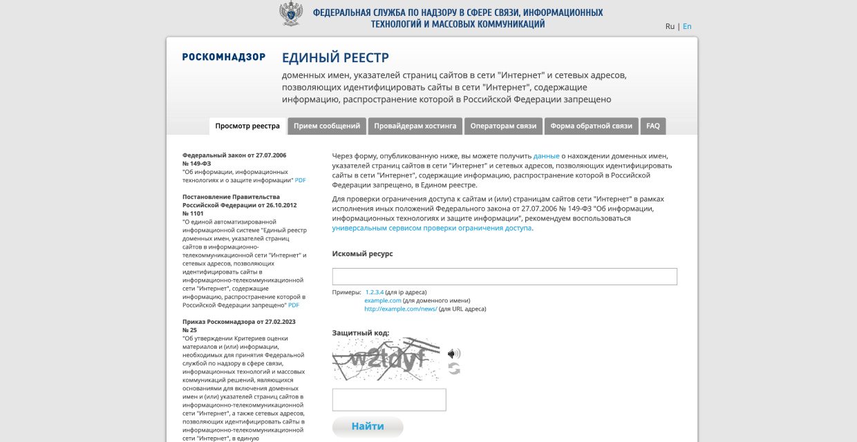 Как искать в реестрах заблокированных сайтов Роскомнадзора