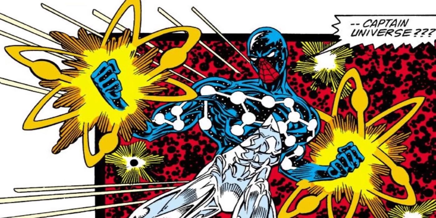 Космический Человек-Паук, несомненно, самая мощная вариация персонажа. в Акты мести По сюжету Питер поглощает таинственную силу, известную как Сила Загадки. Это дает ему невероятные силы и приносит ему титул Капитана Вселенной, физической формы Вселенной, энергии, которая считается проявлением самой Вселенной.