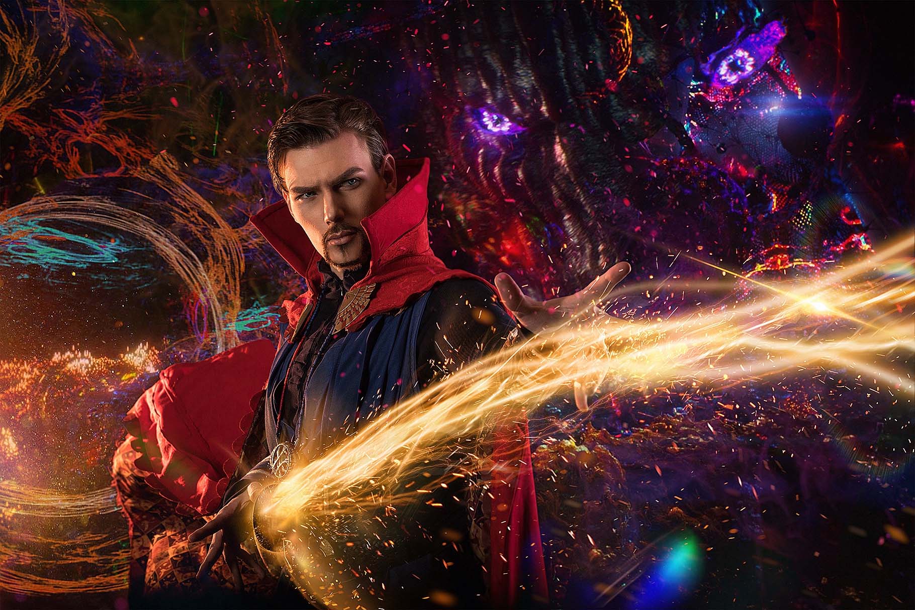 - Бенедикт Камбербэтч/Стивен – первоклассный нейрохирург. Однажды попал в аварию, после которой ему не смогли восстановить руки. Он обратил свой взор на Восток, желая их вылечить и вернуть свою работу врача. Так он становится великим магом, миссия которого – спасти мир от зла;