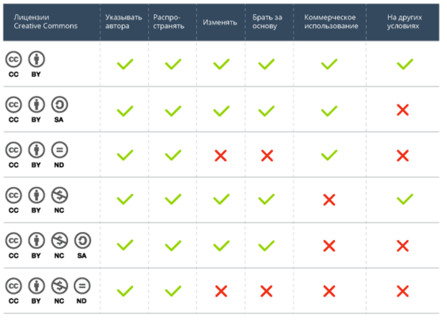 Остальные лицензии Creative Commons не подходят для коммерческого использования, поэтому разбирать их нет смысла.