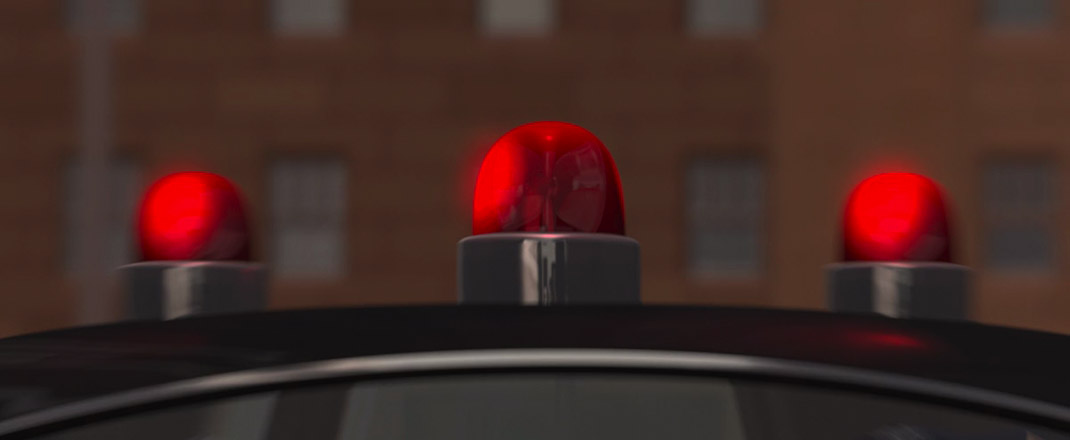 Логотип логично переходит на красную полицейскую сирену — символ быстроты, опасности, энергии.