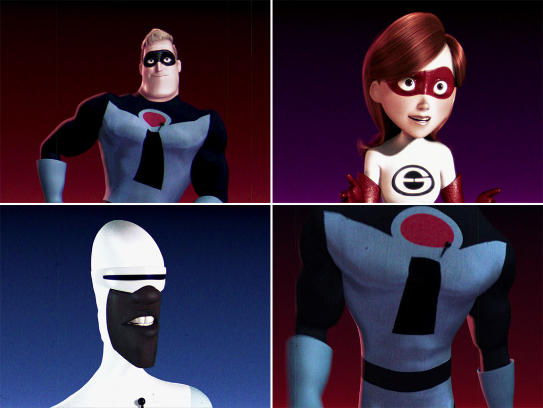 После вырывается логотип на красном фоне. Красный, как правило, означает энергию, смелость, динамику, восхищение, также красный и оранжевый в последствии будут на костюмах суперсемейки.