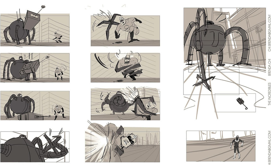 Все начинается с раскадровки. Разработка раскадровки это необходимый этап, который собирает всю историю вместе. С неё начинается построение мизансцен фильма. Раскадровка это не только визаульная интерпретация сценария, она также позволяет дизайнерам и аниматорам понять что именно будет показано на экране. Следующим шагом, после того как сценарий окончен, является его воплощение в ввиде последовательности черновых картинок раскадровки, на которых изображены действия и мизансцены, описаные в сценарии.