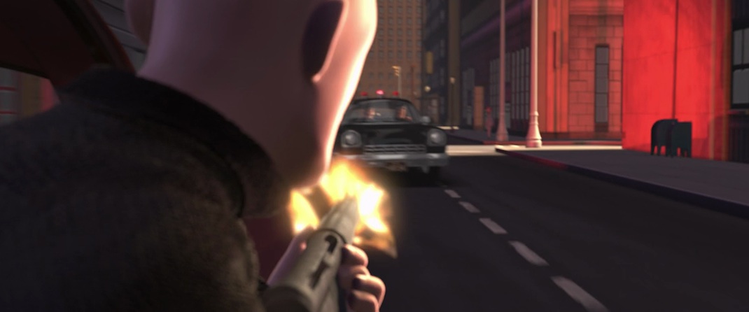 Довольно много информации за такой короткий промежуток времени. Мы видим, что они вооружены и не готовы сдаваться без боя. Панорамирование показывает, как они стреляют в копов. Благодаря великолепной постановке, действие начинается сразу же, и нам все становится понятным. Мы понимаем — это будет боевик и после медленного, спокойно развивающегося вступления, на контрасте начинается битва. Динамическая камера позволяет аудитории полностью погрузится в действие.