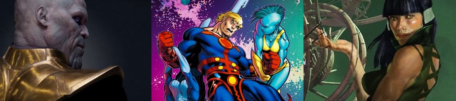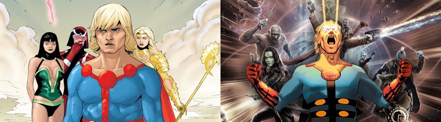 С первых секунд фильм отдаленно начинает напоминать начало «Звездных воин». Привязка к галактическому пространству, такое же вступление (предыстория) сюжета «Вечных». Отличается лишь музыка, но текст, примерно, такой же. Где-то местами экранизация напоминает эпизоды фильма-комикса «Бэтмен против Супермена».