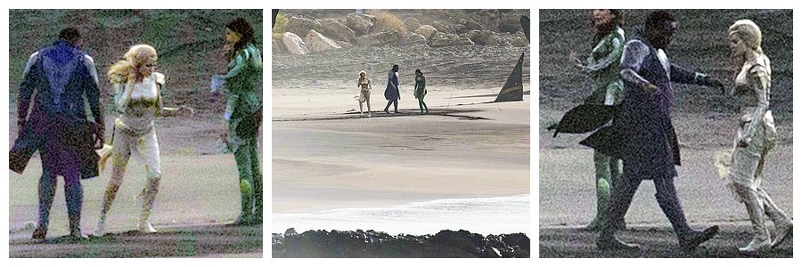 Анджелина Джоли, Брайан Тайри Генри и Джемма Чан на новых фото со съёмок кинокомикса «Вечные»
