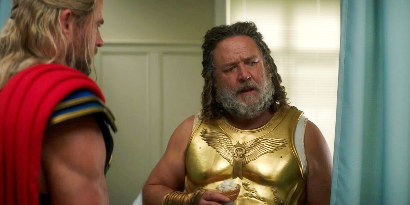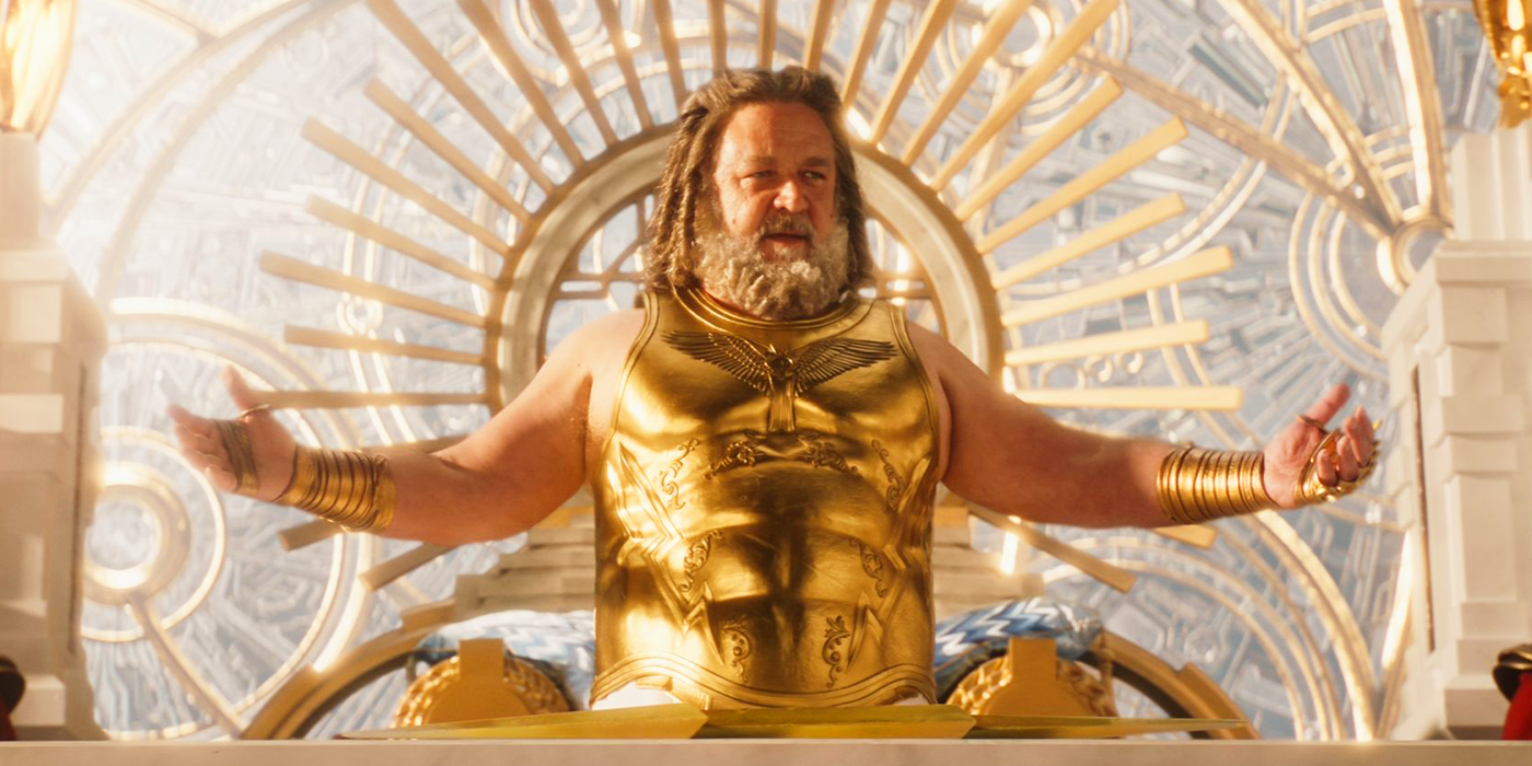 Зрителям уже знаком греческий бог неба, но Рассел Кроу представил совершенно иную интерпретацию Зевса в Торе: Любовь и гром. Зевс — отец олимпийских богов, одно из самых могущественных существ во вселенной и бессмертный персонаж Города Всемогущества в MCU. Эти похвалы сделали его высокомерным, ленивым и апатичным по отношению к окружающей его вселенной и потребностям его сокращающихся последователей. Зевс отказывается помочь Тору в его стремлении помешать Горру-мяснику богов достичь Вечности, хотя его замечательное оружие «Удар молнии» пригодится в финальной битве против Горра.