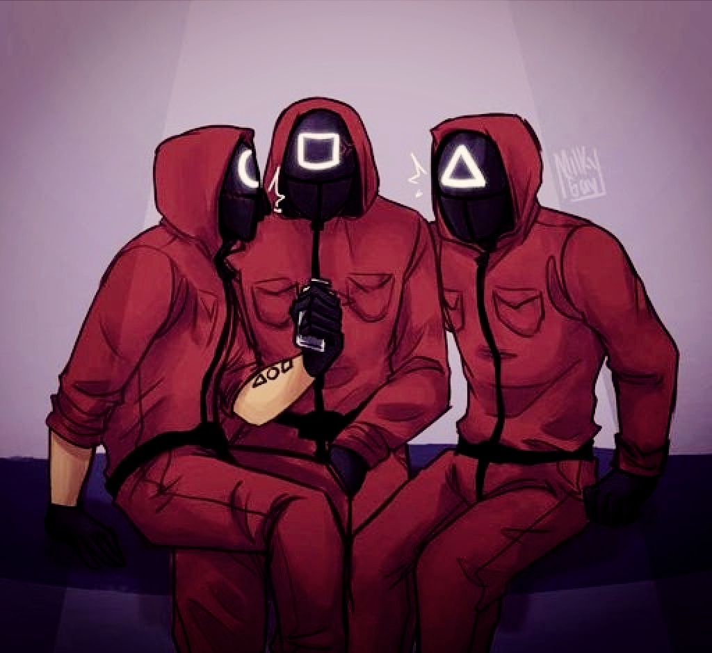 В сериале с помощью фигур на масках четко обозначена иерархия: круг – это рабочие, квадрат – менеджеры, а треугольник – солдаты.