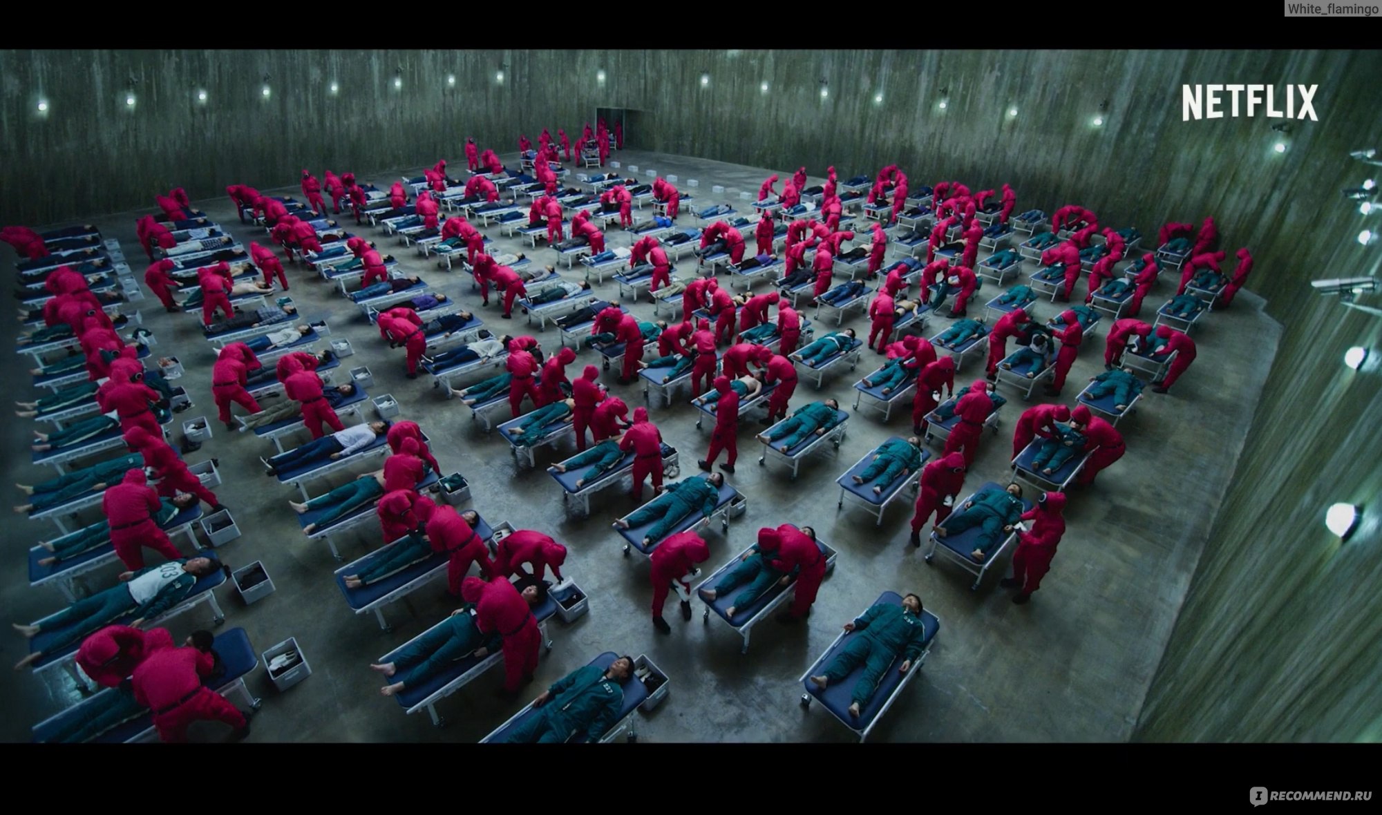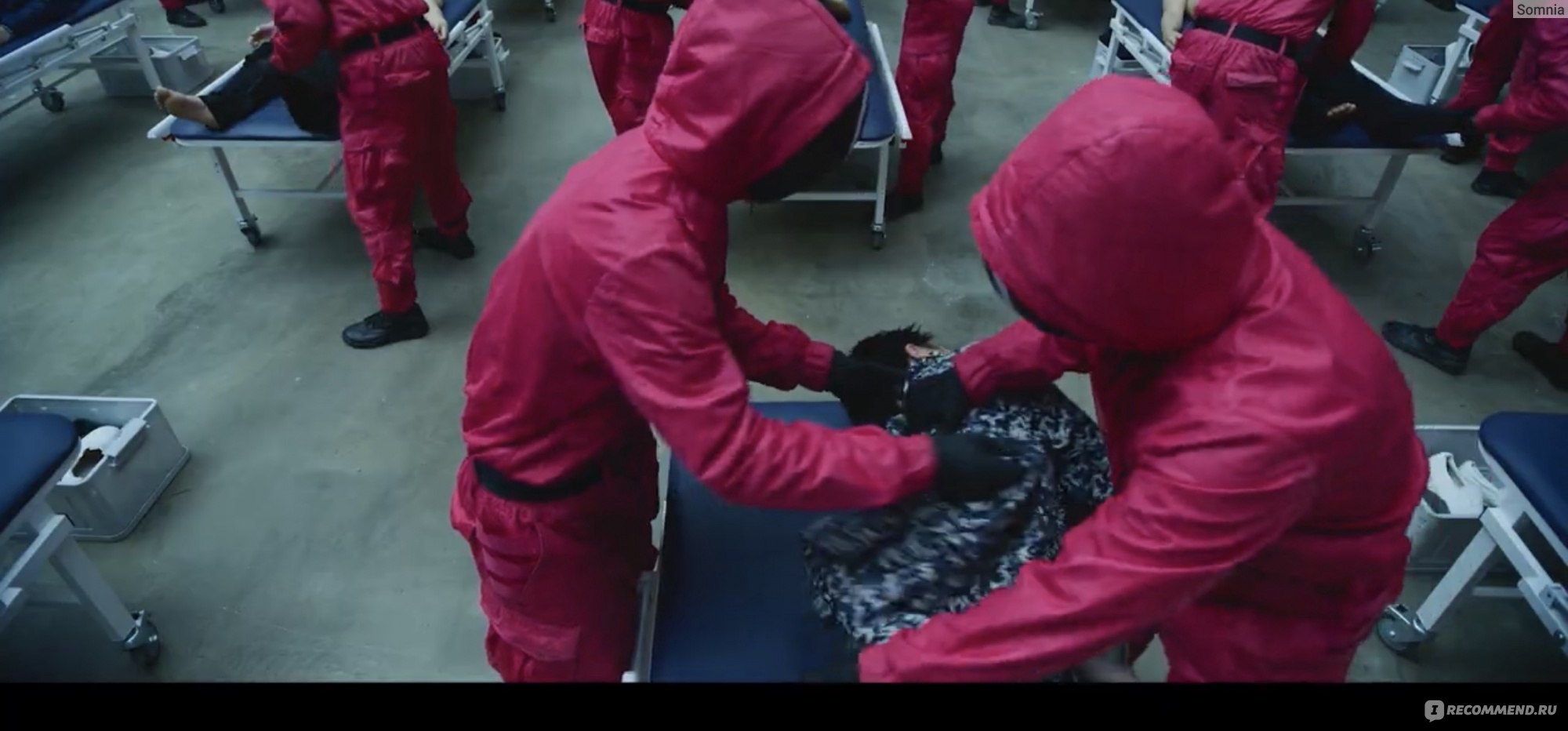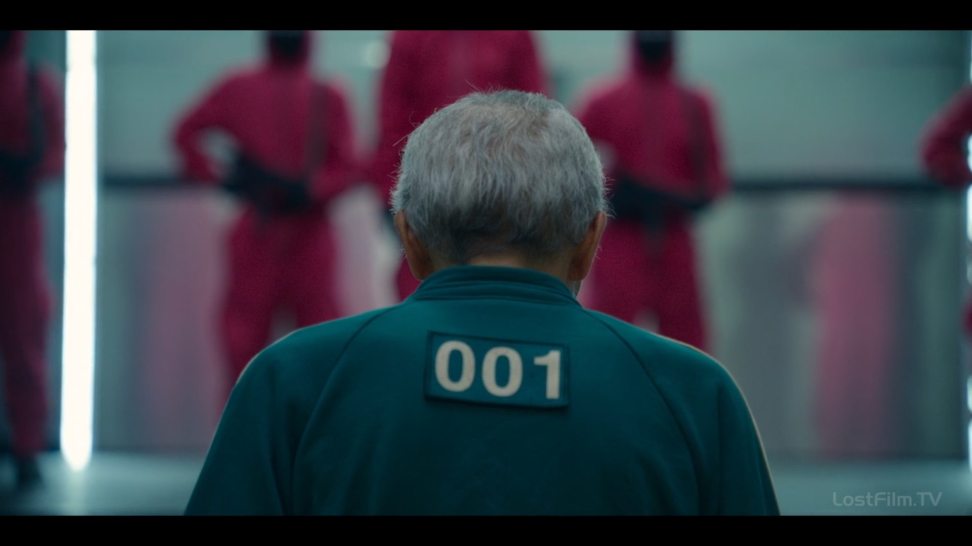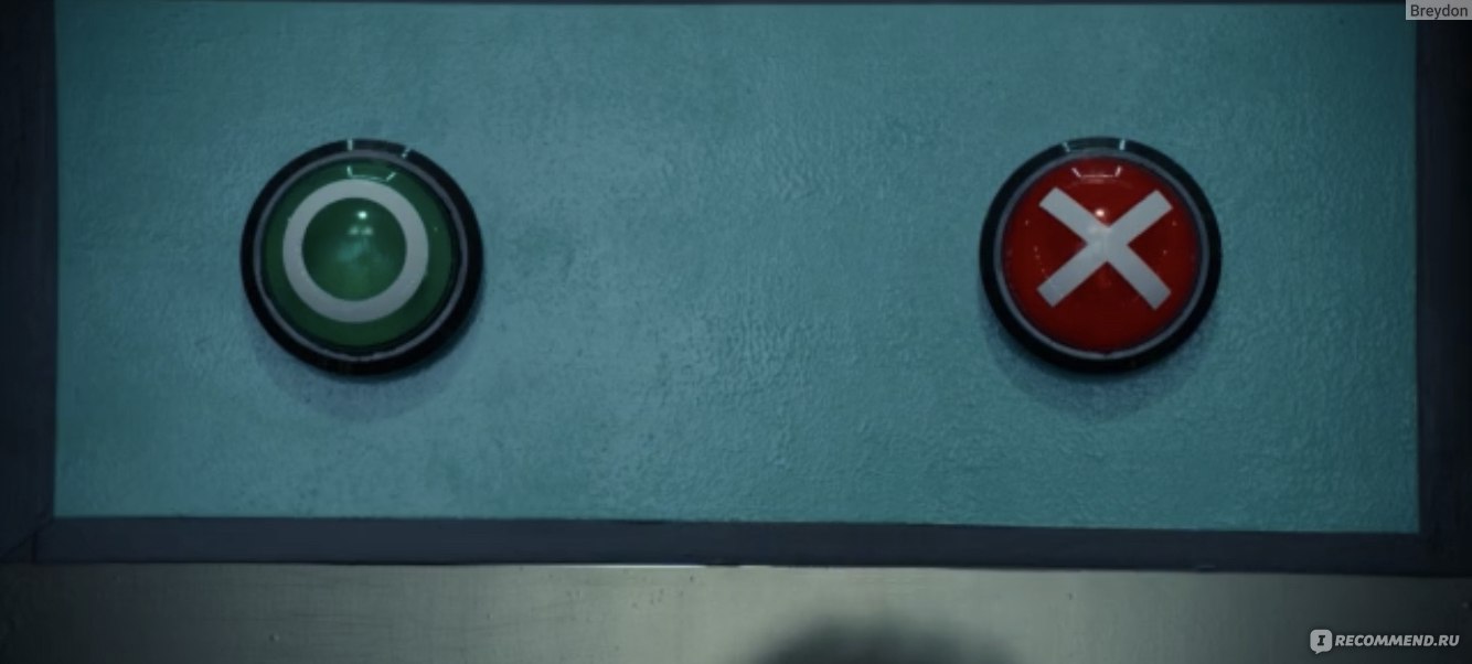 Кстати, мужчина предлагает две карточки – красную и синюю на выбор. Здесь два момента – во-первых, это отсылка к «Матрице» с её синей и красной таблеткой, во-вторых, если бы герой выбрал бы красную карточку, скорее всего, его задача была бы обслуживать игру, стать одним из организаторов. Организаторы носят непроницаемые, безликие красные костюмы, игроки – синие с номером. И те и те обезличены, и те и те, пошли на сделку с совестью, честью и душой ради заработка.