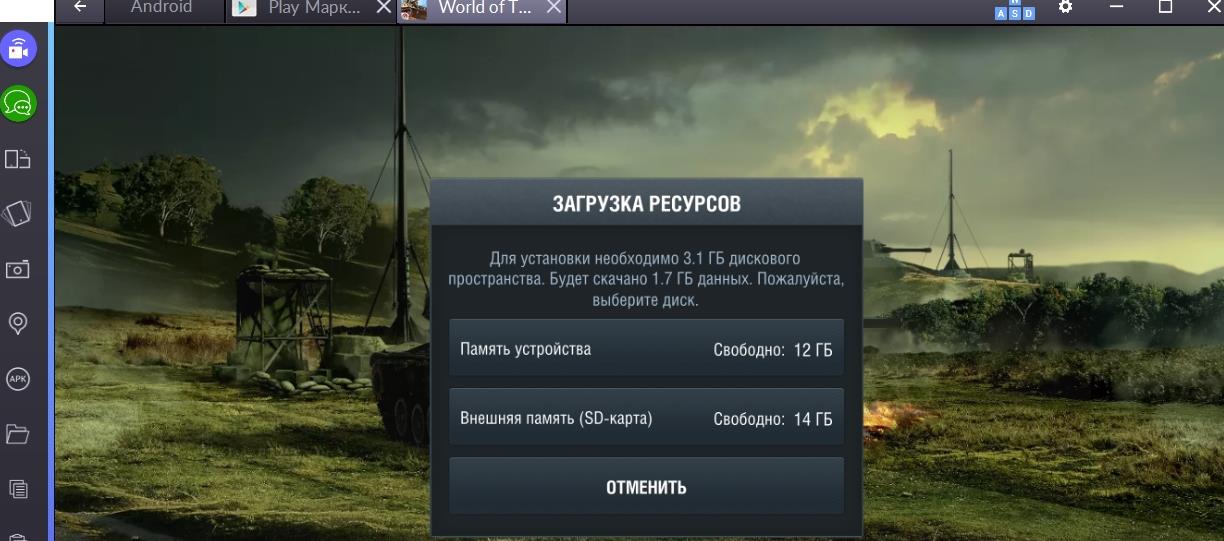 Для полноценной игры в wot blitz через windows 7 можно с лёгкостью воспользоваться способом описанным выше и полноценно играть, но если вас не устраивает Steam или нет возможности через него играть не беда, можно с легкостью использовать BlueStacks App Player, который предназначен для запуска различных Android-приложений на компьютере. Для этого можно скачать по прямой ссылке с drive google. Где в скачиваемой версии BlueStacks вы не столкнётесь с такой проблемой как нехватка выделенной памяти для приложений.