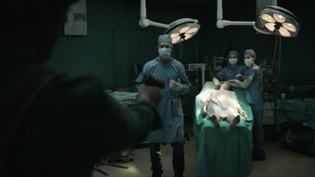 Ворвавшись в операционную, он застреливает Профессора – возможно, единственного человека, который мог бы спасти человечество. Берёт Элли, находящуюся под наркозом, и уходит из Госпиталя.