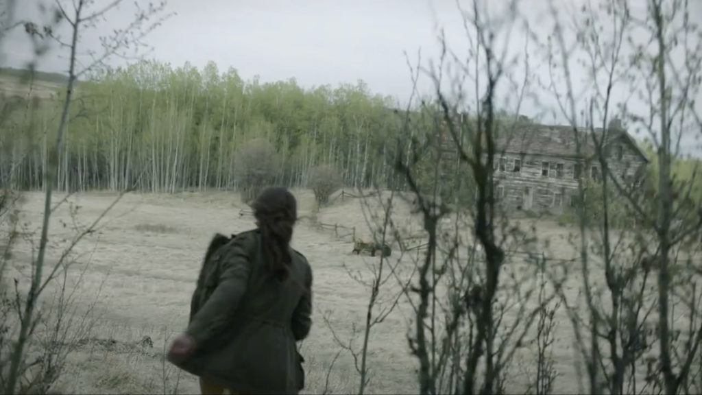 В доме девушка запирается в комнате на втором этаже, однако это не помогает – заражённый врывается, нападает на героиню, после непродолжительной борьбы умирает, оставив укус на её ноге. В этот же момент рождается ребёнок – девочка. Та самая единственная девочка, носитель иммунитета, Элли.