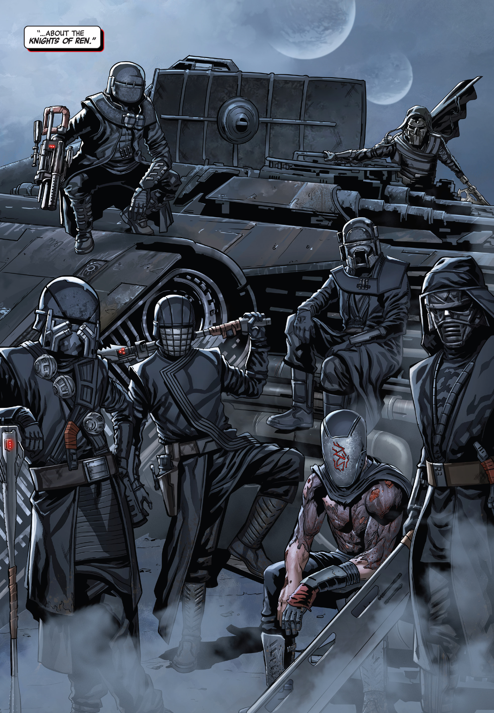 В многочисленных поселениях, разбросанных в Неизведанных Регионах и пограничных территориях, ходили истории о группе безжалостных мародёров, известных как Рыцари Рен. После возникновения Первого ордена эти мифы стали претворяться в реальность, однако доподлинно неизвестно, была ли ныне существующая банда той самой группировкой из легенд, либо же они просто взяли это наименование для создания собственной репутации. Рыцари Рен не являлись рыцарями-джедаями или лордами ситхов, однако заняли пустоту, образовавшуюся после смерти Дарта Вейдера, последнего лорда ситхов. Каждый из них был чувствителен к Силе, однако их способности не были развиты сильно. В прошлом поколении они имели бы все шансы стать отличными имперскими инквизиторами. Хоть рыцари и действовали единым отрядом, их боевые навыки не были равны. Тем не менее, вместе они представляли собой самых загадочных и смертоносных слуг тьмы.