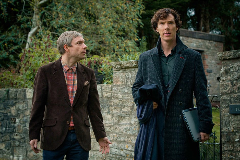 «Шерлок», выходивший на «Би-би-си» с 2010-го по 2017 год, перенес в современный Лондон всех героев романов Артура Конан Дойла. Тут и сам эпатажный мистер Холмс в исполнении Бенедикта Камбербэтча, и его верный помощник доктор Ватсон (Мартин Фримен), и высокомерный брат Майкрофт (Марк Гэтисс), и зловещий антагонист Джим Мориарти (Эндрю Скотт), и роковая Ирен Адлер (Лара Пулвер), и даже легендарная миссис Хадсон (Уна Стаббс). Названия эпизодов представляют собой отсылки к повестям и рассказам Дойла: «Этюд в багровых тонах» превратился в «Этюд в розовых тонах», «Скандал в Богемии» — в «Скандал в Белгравии» и так далее.