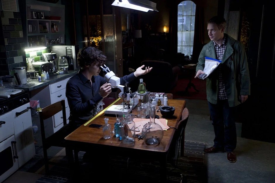 Все вышеперечисленные художественные решения Гэтисса и Моффата ставят «Шерлока» в положение безвременья. Да, заглавный герой в любой момент готов засыпать на головы окружающих массу фактов из последних сводок новостей, подтверждающих, что этот мистер Холмс действительно живет в XXI веке, но сюжет шоу вообще ничего не потерял бы, если бы разворачивался еще сто лет спустя. «Шерлок» — история о столкновении супергероев, гениального сыщика и не менее гениального, до боли экспрессивного злодея Мориарти. Странная и опасная игра, в которой два этих социопата готовы ради победы и с собой покончить, может, безусловно, впечатлить, но едва ли заставит почувствовать эмоциональную близость с персонажами на экране.