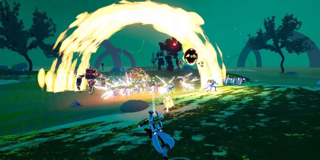 На первый взгляд Risk of Rain 2 может показаться обычным «рогаликом», однако у проекта множество сходств с другими лутер-шутерами из данной подборки. На протяжении всей игры мы ищем различные предметы для усиления протагониста, но рано или поздно всё равно погибаем в одной из хаотичных схваток на более поздних уровнях.