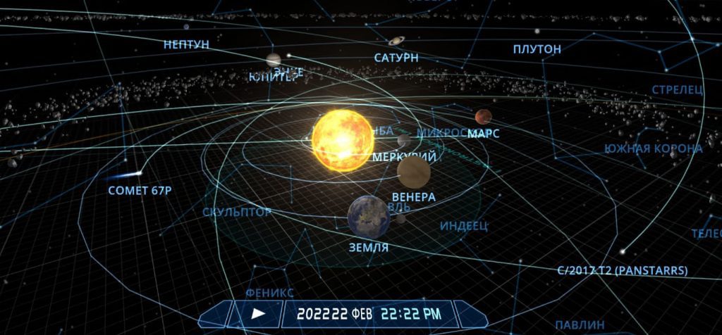 Положение планет, созвездий и комет 22.02.2022 в 22.22