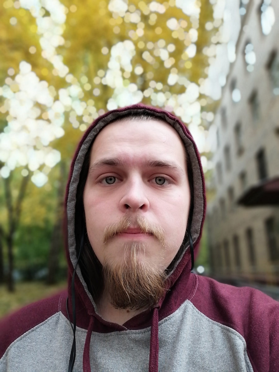 Передняя камера – такая же, как у Mate 20 Lite – 16 Мп сенсор с диафрагмой оптики f/2. Примеры селфи на переднюю камеру с Боке и без: